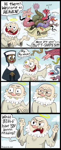 With this comic, I will now be better prepared. If something like this happens, I will simply say, “Hooray! My very own butt-snipes! Thank you! Where are the tongs?”